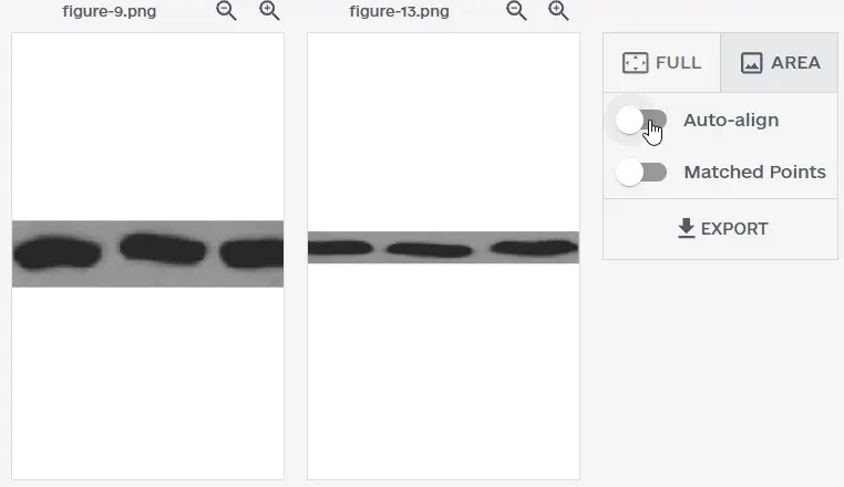 Imagetwin normalises transformed images, ensuring accurate comparisons even when figures have been rotated, flipped, or resized. The auto-align feature allows side-by-side comparison of the original and transformed versions.
